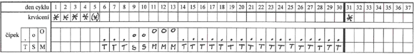 Zjištěné údaje značíme do tabulky.Typický průběh změn čípku během